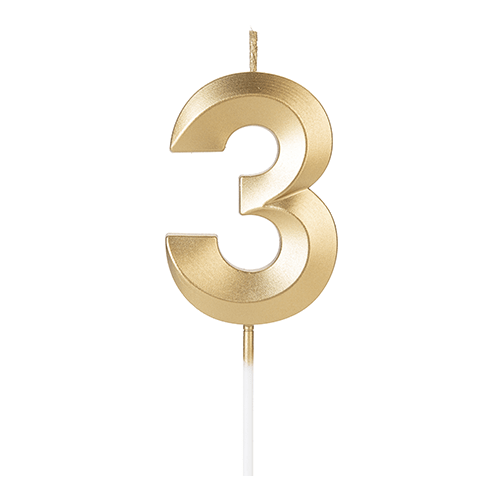 Vela de Aniversário Design Dourada Número 3 - Silver