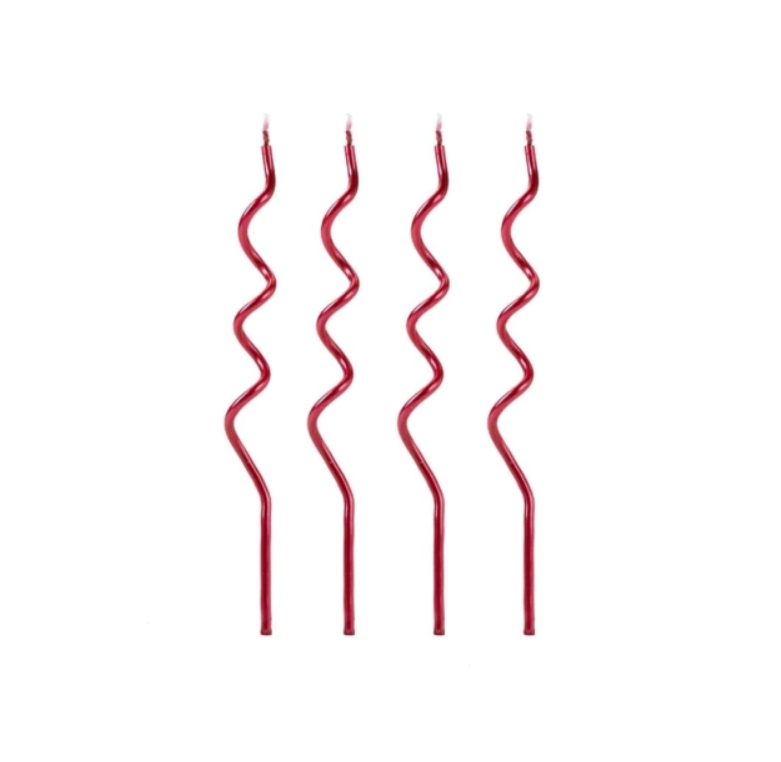 Vela de Aniversário Palito Espiral Vermelha com 14cm 4 Unidades - Silver